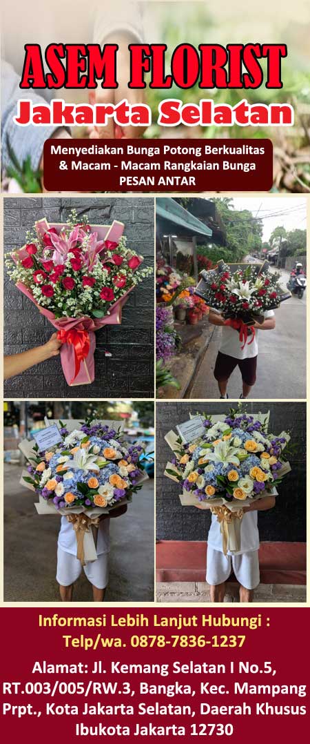 Asem Florist – Toko bunga Kemang Selatan berdiri lebih dari 10 thn dengan komitmen untuk menghadirkan keindahan alam ke dalam kehidupan Anda. Kami menawarkan berbagai macam bunga segar, rangkaian bunga, karangan bunga, dan dekorasi floral untuk segala acara. Dari perayaan ulang tahun, pernikahan, hingga ungkapan duka cita, kami siap membantu Anda mengekspresikan perasaan Anda dengan sempurna.