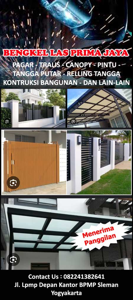 Bengkel Las Prima Jaya | Merupakan perusahaan yang bergerak di bidang jasa pengelasan besi tempa & konstruksi yang terletak di Jl. Lpmp Depan Kantor BPMP Sleman Yogyakarta ini dibuat untuk memberikan kemudahan bagi anda sedang mencari bengkel las yang professional dengan harga terjangkau khusunya di wilayah Sleman dan sekitarnya. Kami juga siap melayani pemesanan / pemasangan seluruh wilayah Yogyakarta.